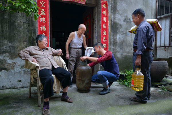 党员干部与困难家庭结“亲戚”,帮助解决生活难题。图为市直机关党员到困难居民家中慰问。