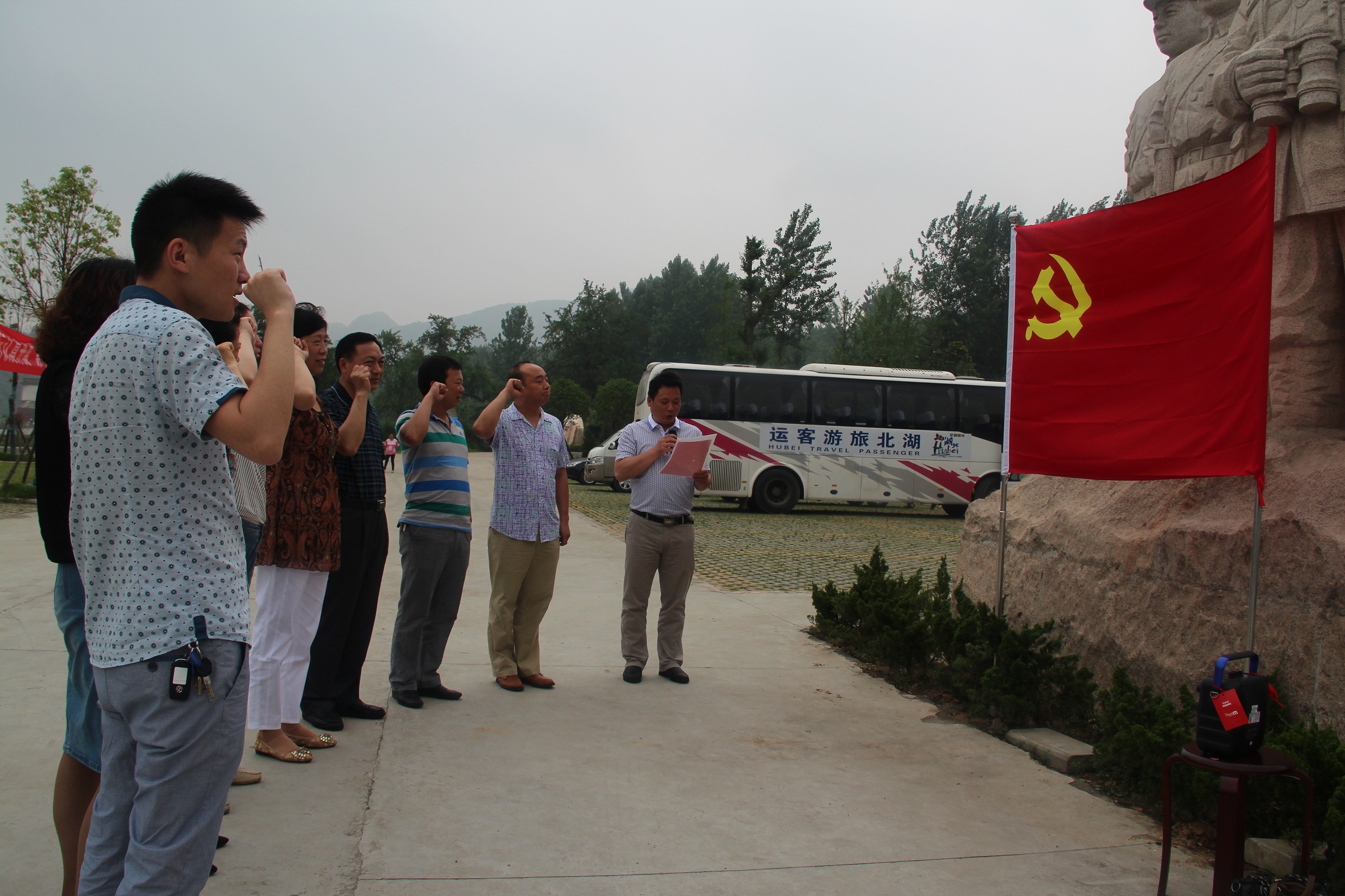 全体机关党员在新四军第五师纪念园前的革命烈士纪念像下,面对鲜红的党旗重温了入党誓词。随后,全体机关党员认真聆听了讲解员的讲解,仔细观看了展馆内展出的大量图片、实物和模型,再次重温了那段光荣的历史, 通过一件件史实、一个个故事、一张张图片、一个个实物,缅怀中国工农红军及革命先烈。